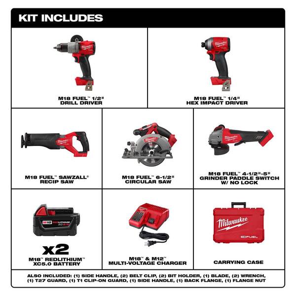 Milwaukee M18 Fuel 18v Lithium Ion Brushless Cordless Combo Kit 4 Tool With 4 1 2 In 5 In Grinder 2997 22 2730 20 2821 20 2880 20